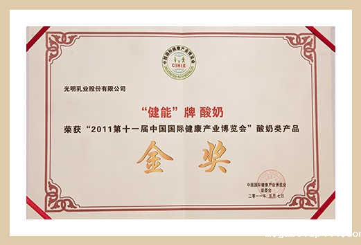 “健能”牌酸奶荣获第十一届中国国际健康产业博览会金奖