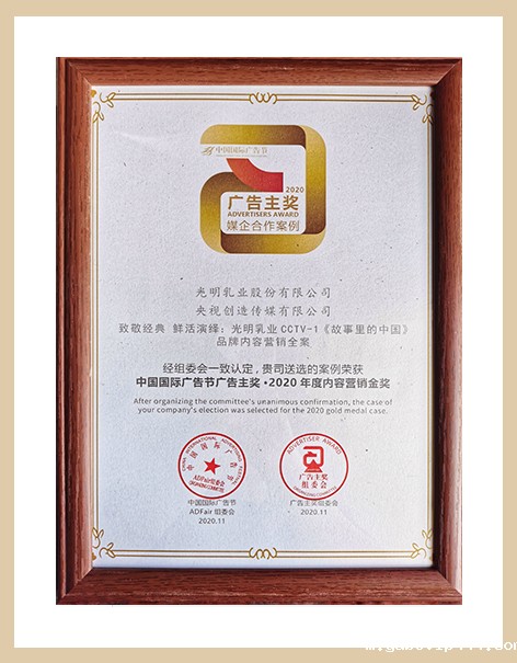 荣获“2020 广告主奖·媒企合作案例奖·内容营销金奖”