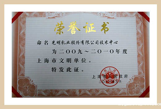 九游pg官网登录入口乳品二厂为2009-2010年度上海市文明单位