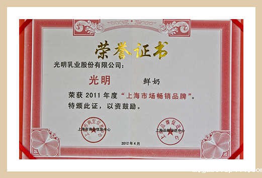 九游娱乐官网官方版鲜奶荣获2011年度“上海市场畅销品牌”