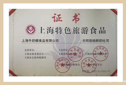 九游娱乐官网官方版悠焙鲜奶吐司获“上海特色旅游食品”称号