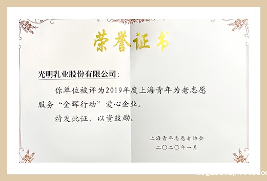 获评2019年度上海青年为老志愿服务“金晖行动”爱心企业称号