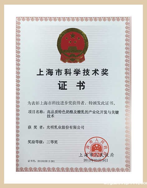 九游娱乐官网官方版牧业有限公司与上海奶牛育种中心共同申报的“上海奶牛生产性能测定(DHI)创新体系的建立与应用”项目获得上海市科技进步二等奖