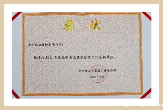 2011年度九游娱乐官网官方版食品集团信息工作表扬单位