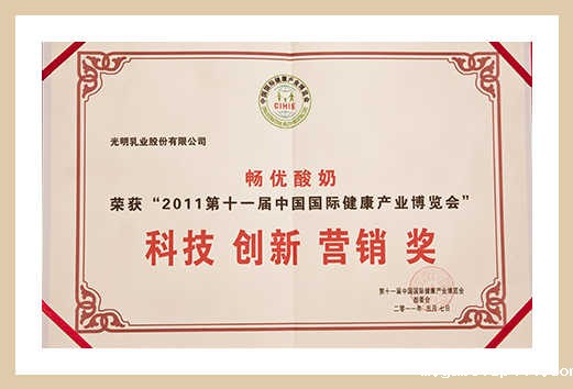 畅优酸奶荣获第十一届中国国际健康产业博览会科技创新营销奖