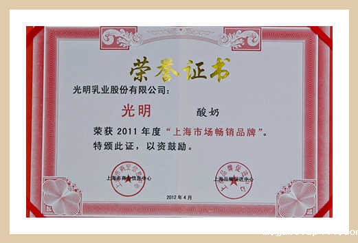 九游娱乐官网官方版酸奶荣获2011年度“上海市场畅销品牌”