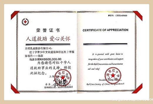 荣获上海市红十字会“人道救助 爱心关怀”荣誉证书